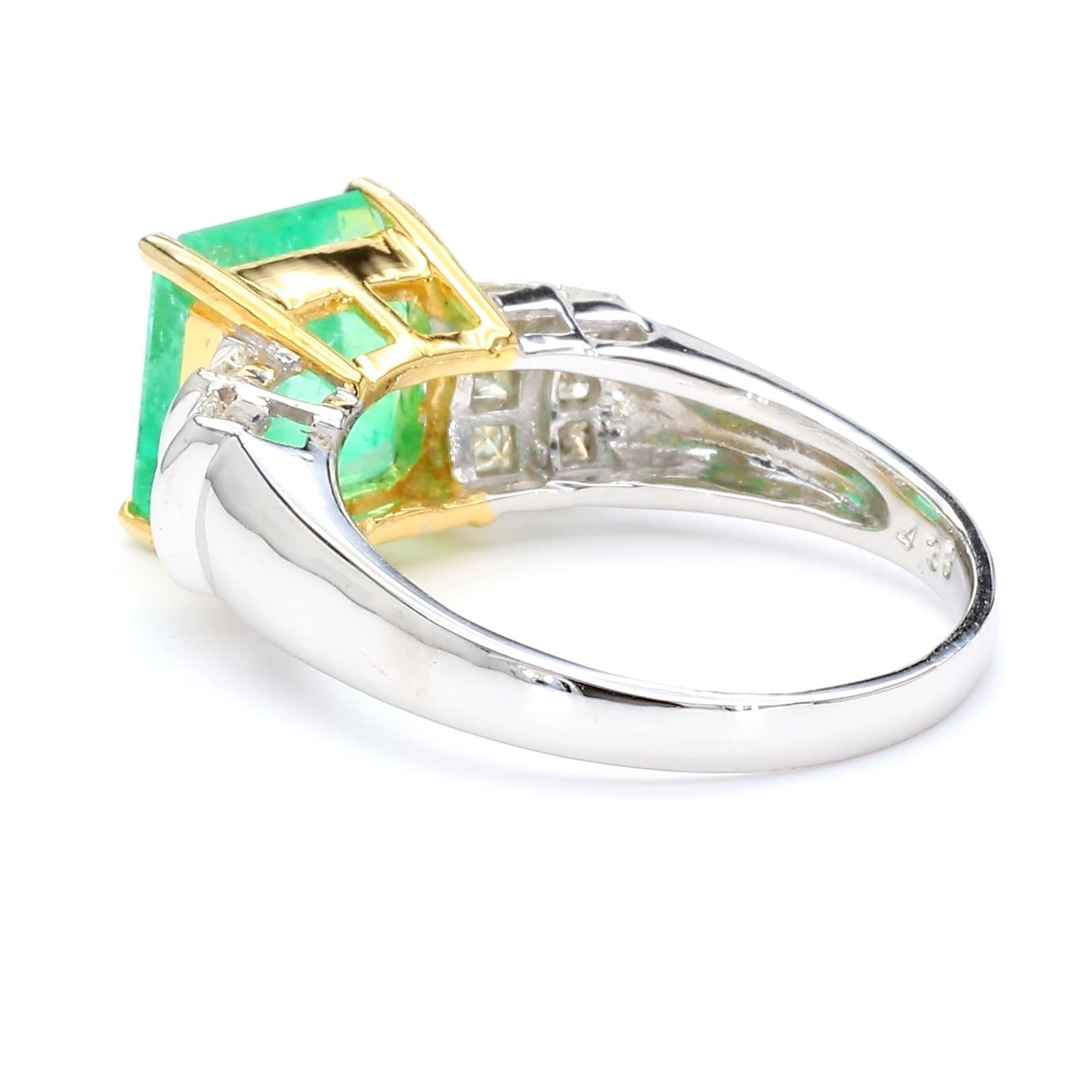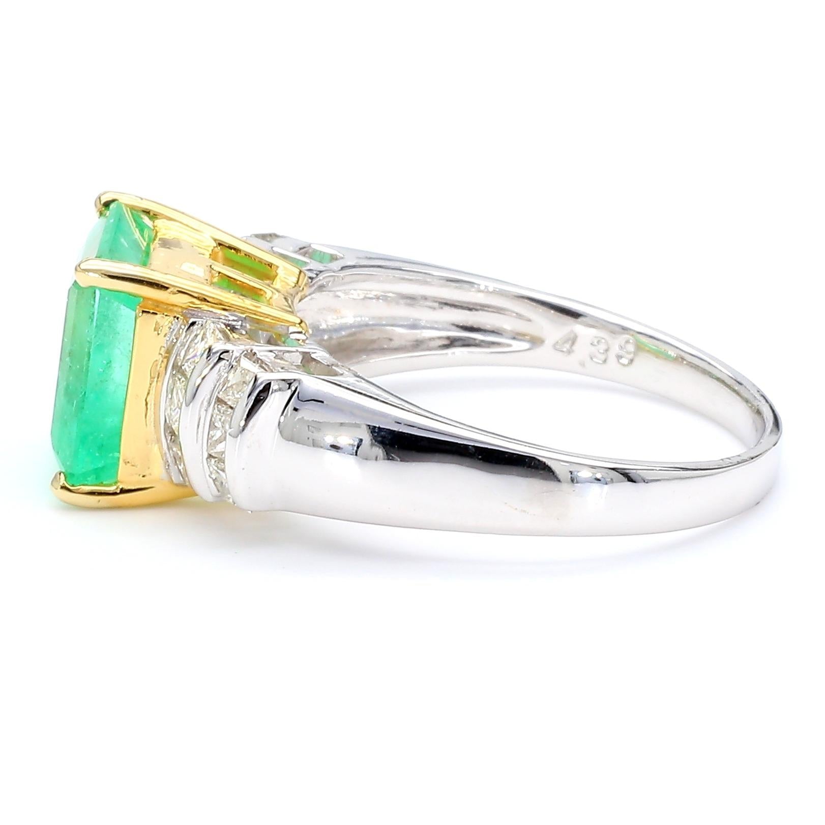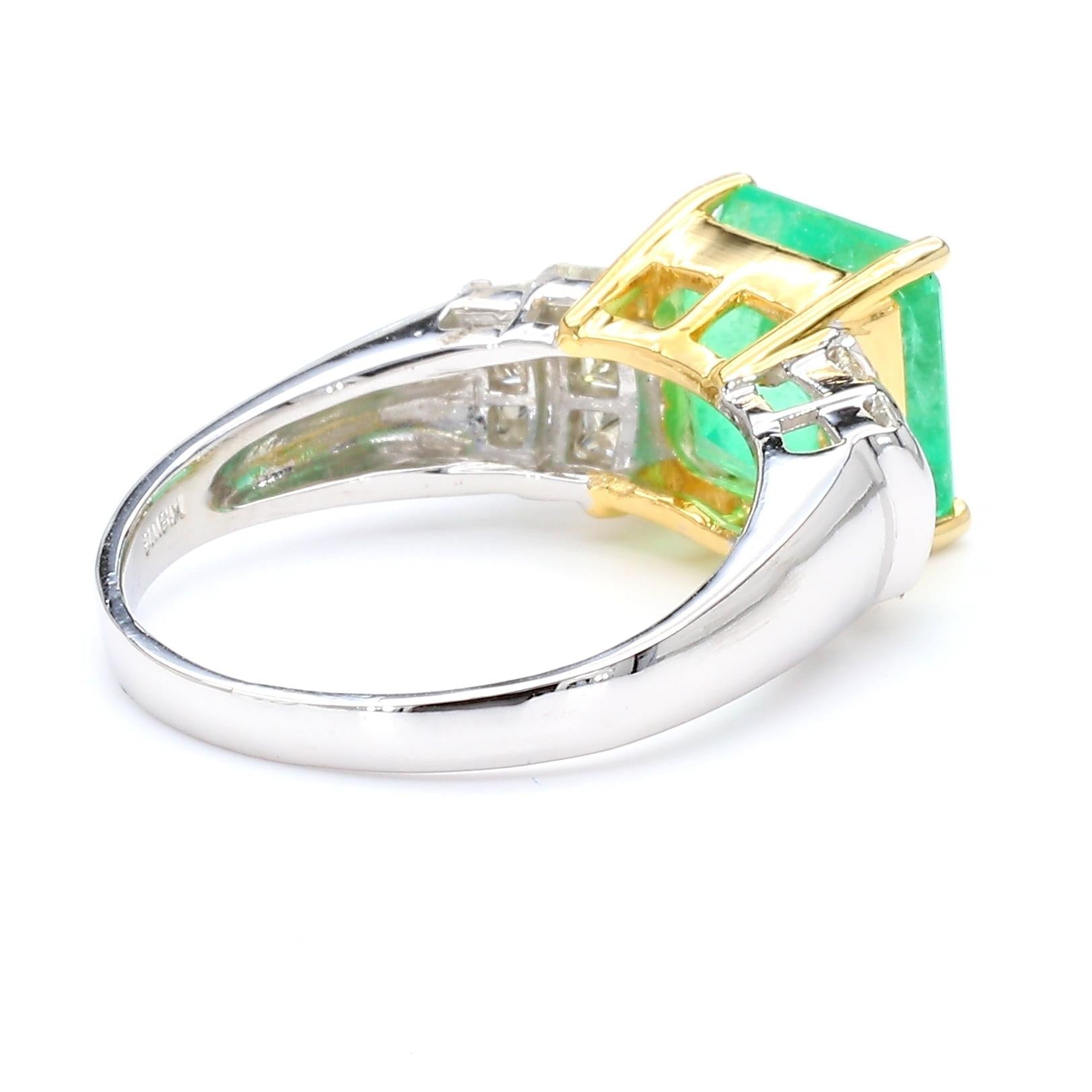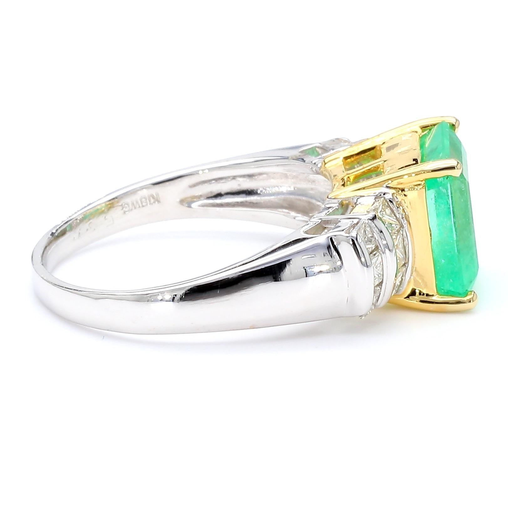 4.39 Carat Emerald Cut Green Emerald & Princess Cut Diamond 18K Two Tone Ring