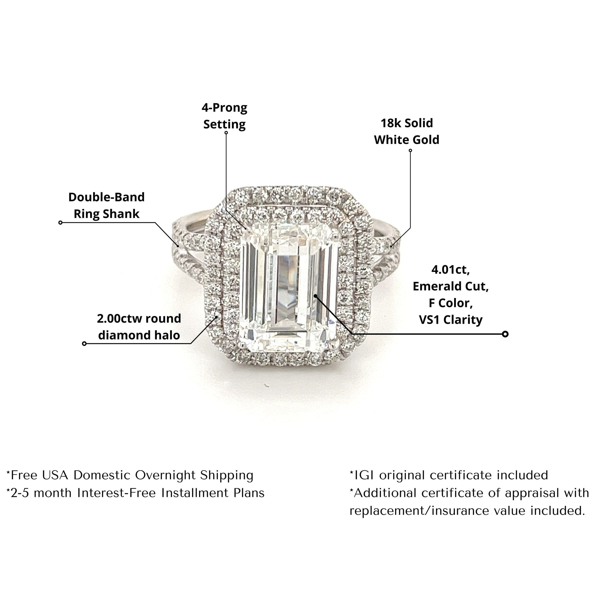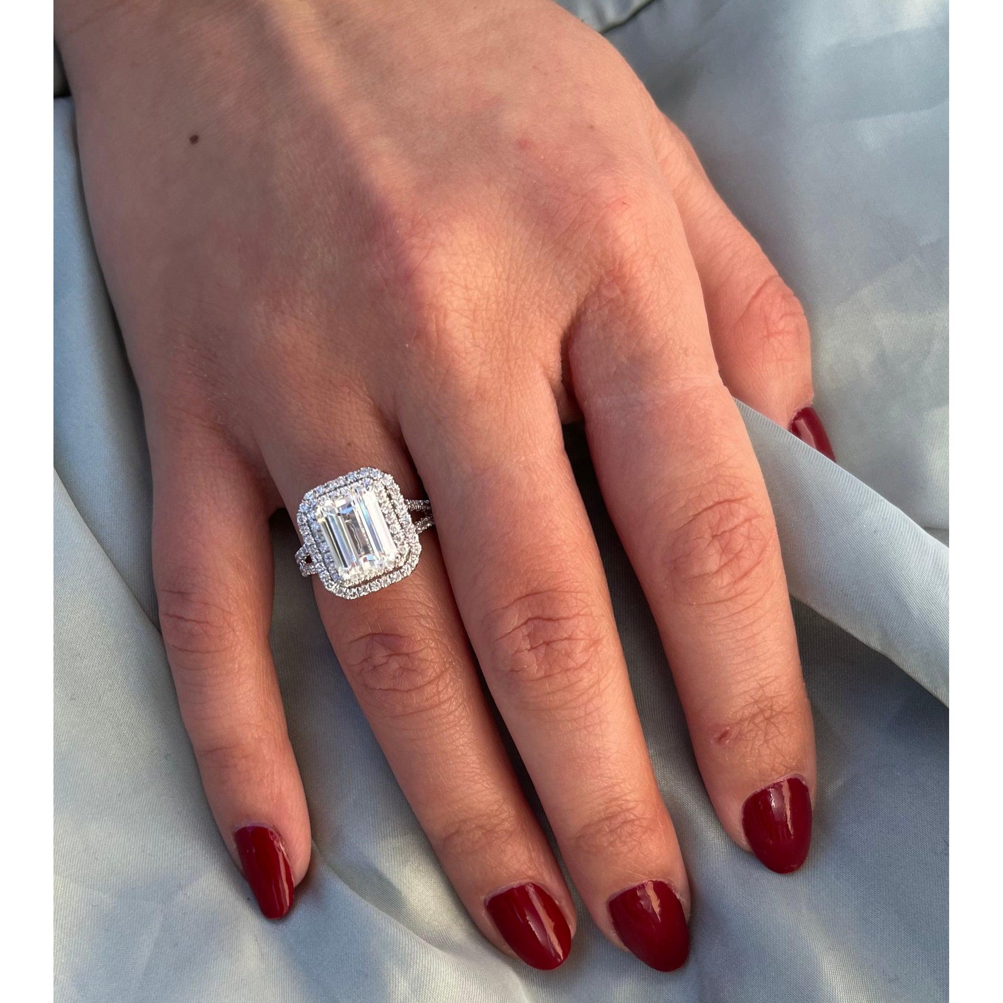4 KARAT Weißgold Smaragdschliff Labor-Diamant Verlobungsring. Smaragdschliff, F Farbe, VS1 Reinheit.