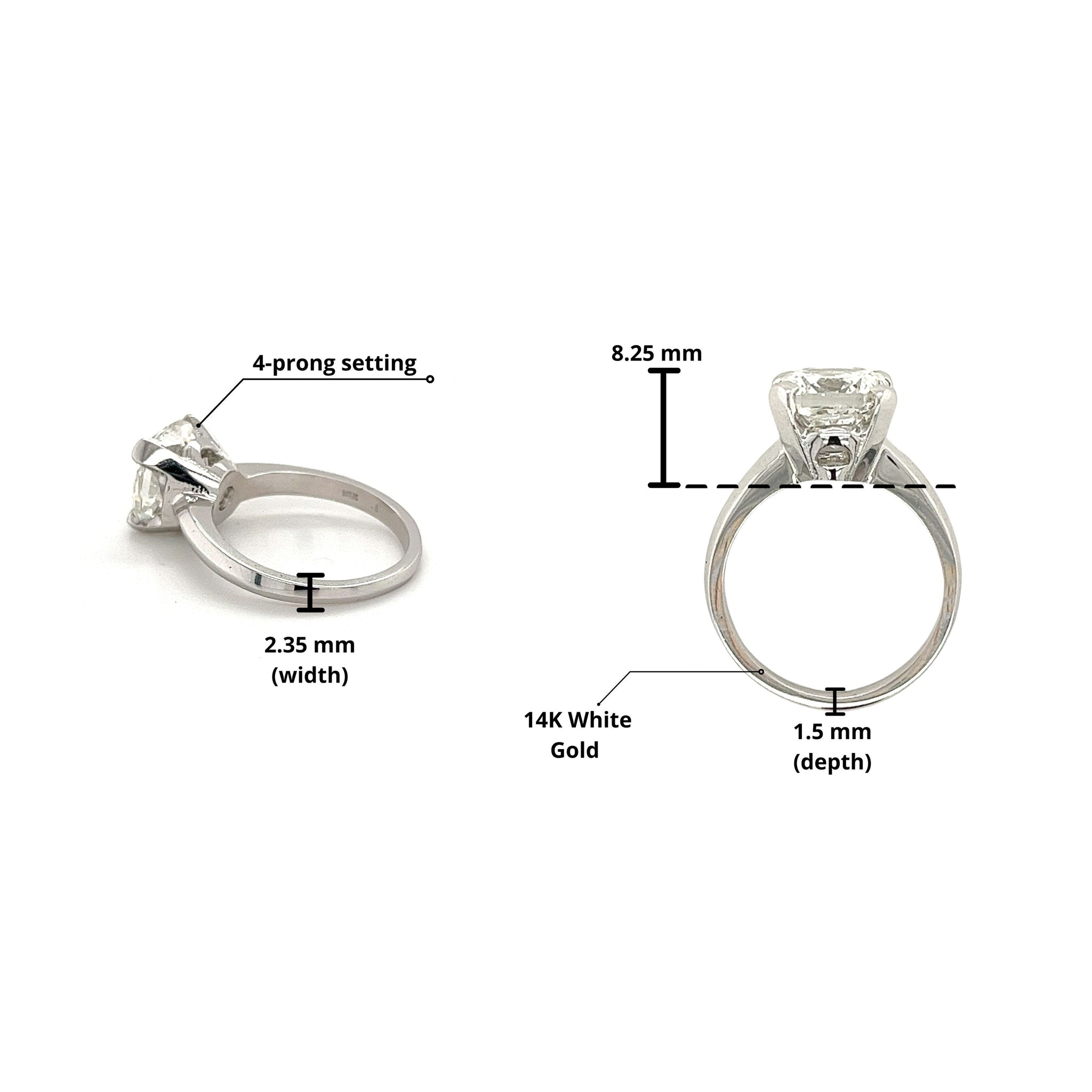 La piedra está engastada en un anillo solitario de oro blanco con brazo recto y un montaje de baja elevación que se asienta bellamente sobre el dedo. Doble baño de rodio para un brillo y resplandor duraderos.