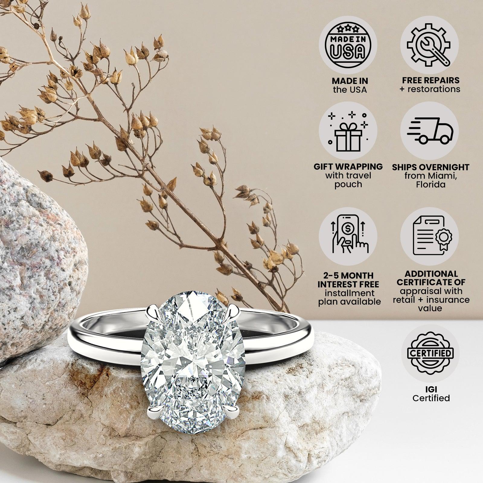 4.05 Carat Cushion Cut F Color VS1 Clarity Lab Grown Diamond Solitaire Ring