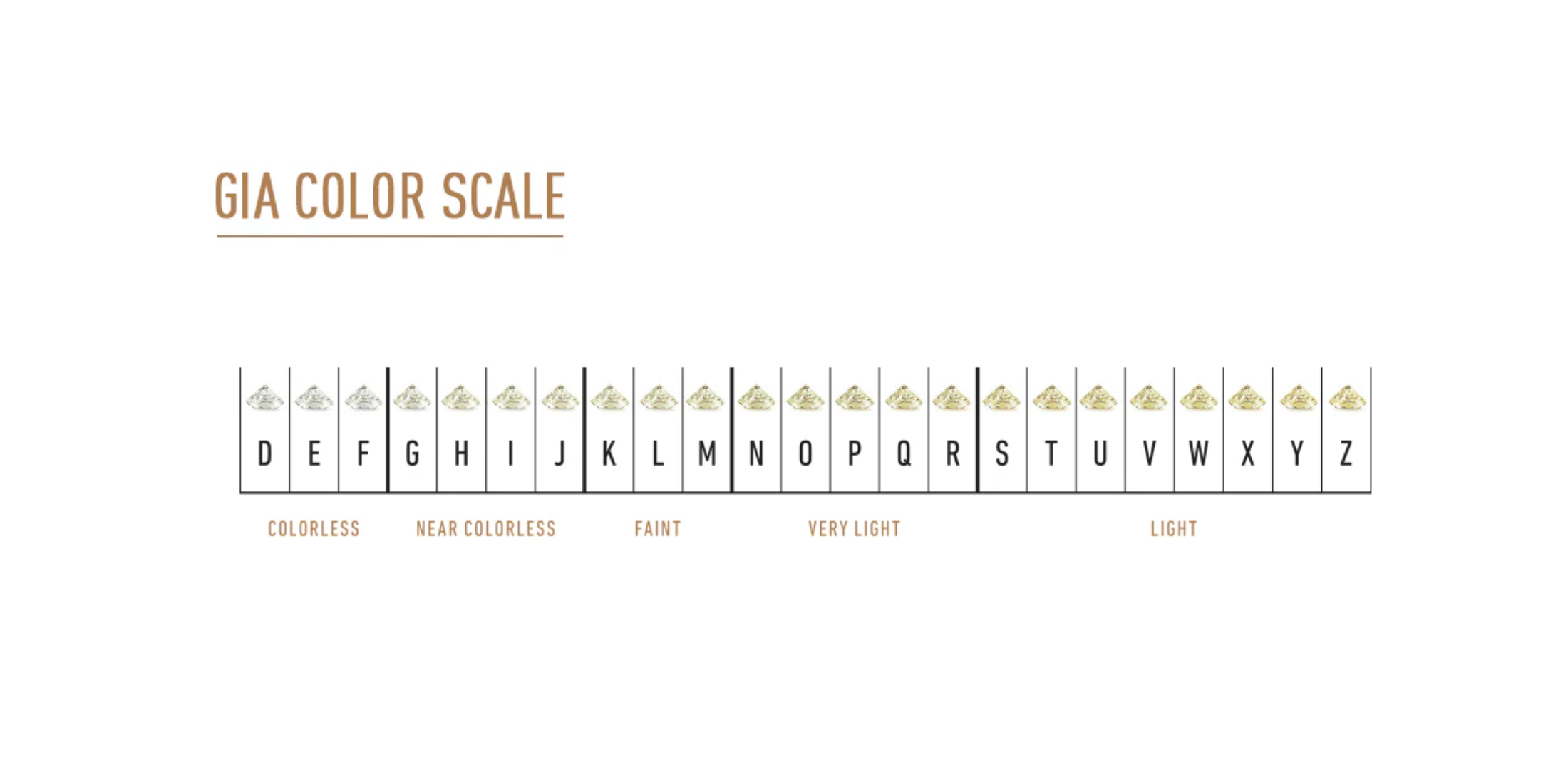 une échelle de D à Z, où D correspond à un diamant incolore (blanc) et Z à une teinte presque jaune.