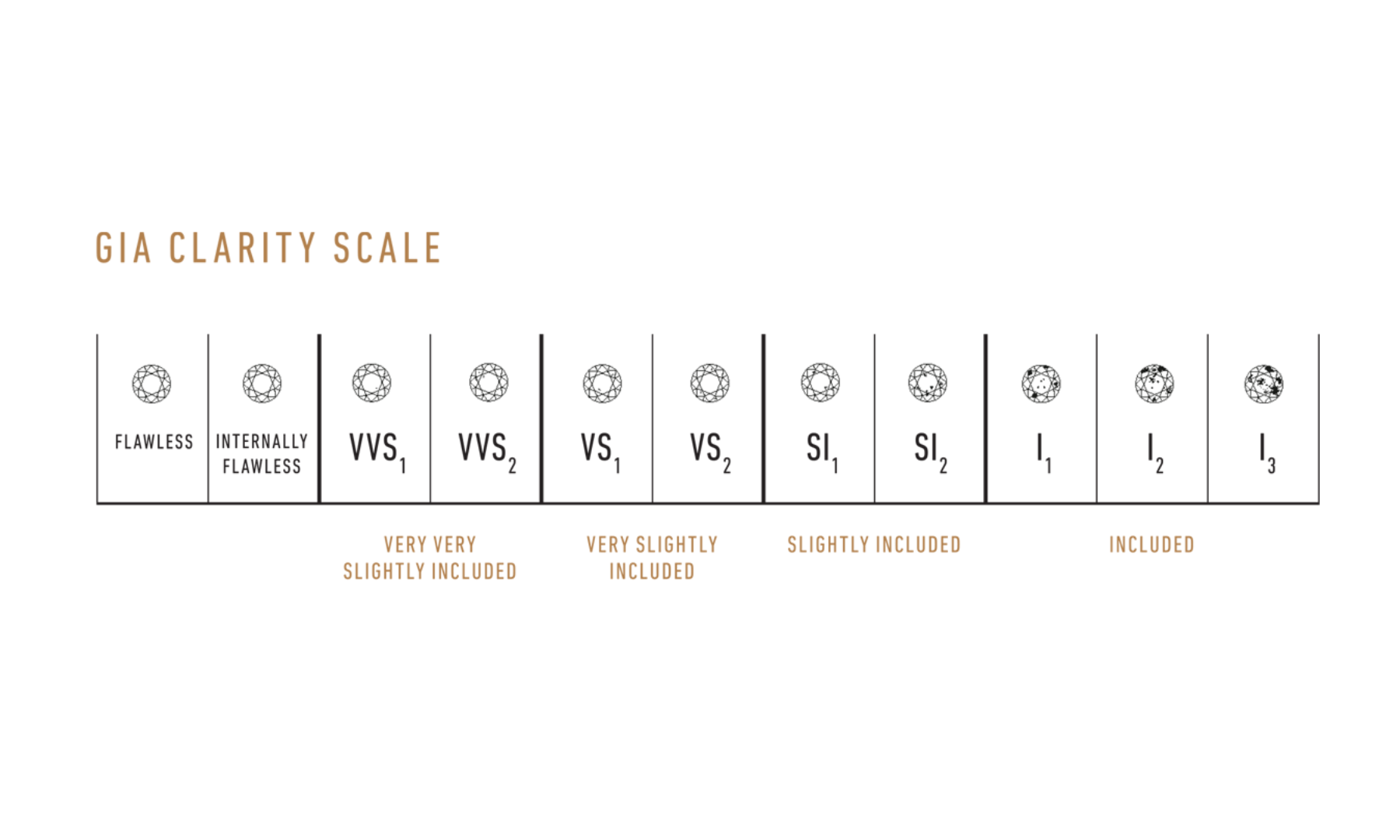 La pureté est évaluée sur une échelle allant de « IF » (interne sans défaut) à « I » (imparfait). Ces notes concernent la quantité/la taille des inclusions à l’intérieur d’un diamant. Les inclusions sont identifiées et localisées à l’aide d’une loupe de bijoutier avec un grossissement de 10x, et seuls les diamants notés « I1 » ou moins présentent des inclusions visibles à l’œil nu.