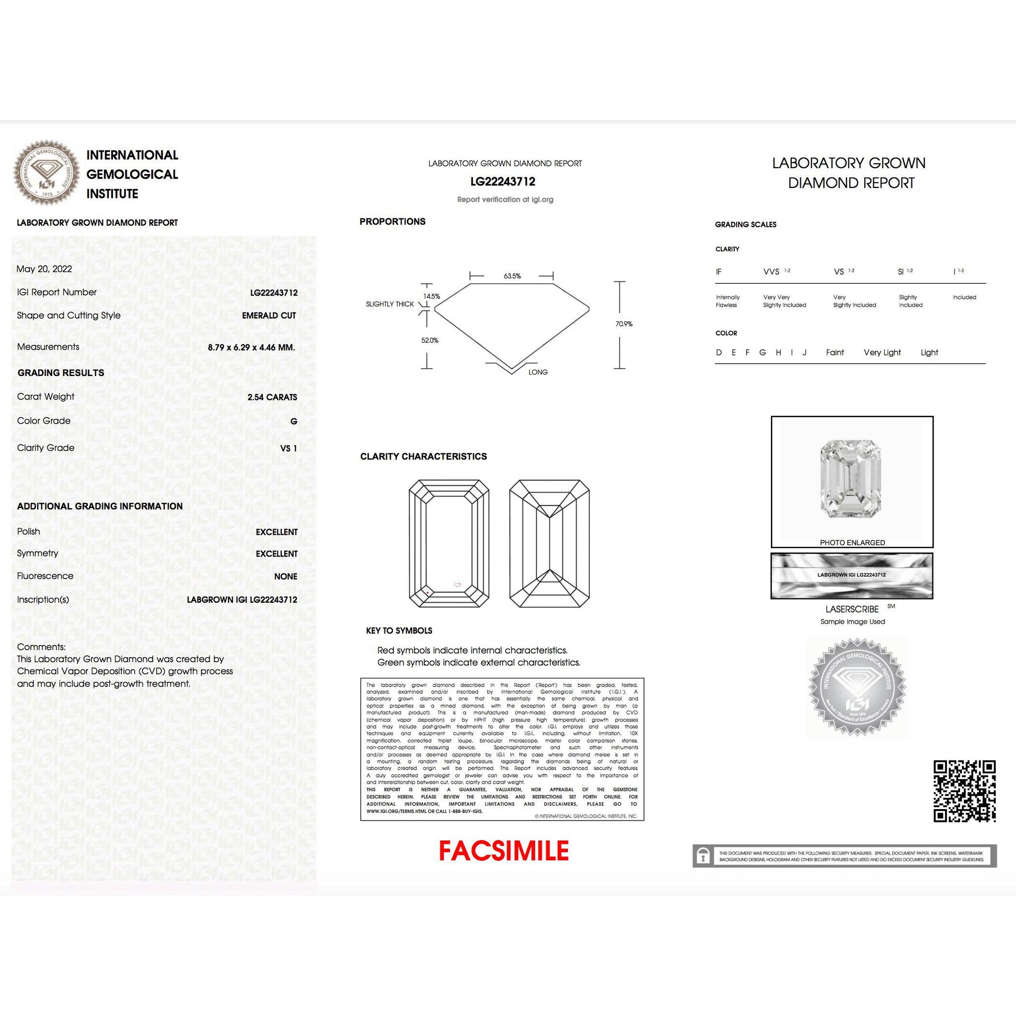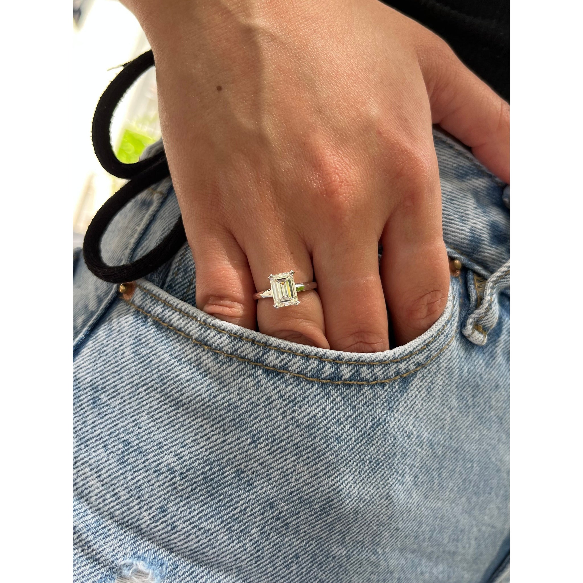 2.54 CARAT Emerald Cut Lab Diamond Engagement Ring in platinum. Emerald cut, G color, VS1 clarity.