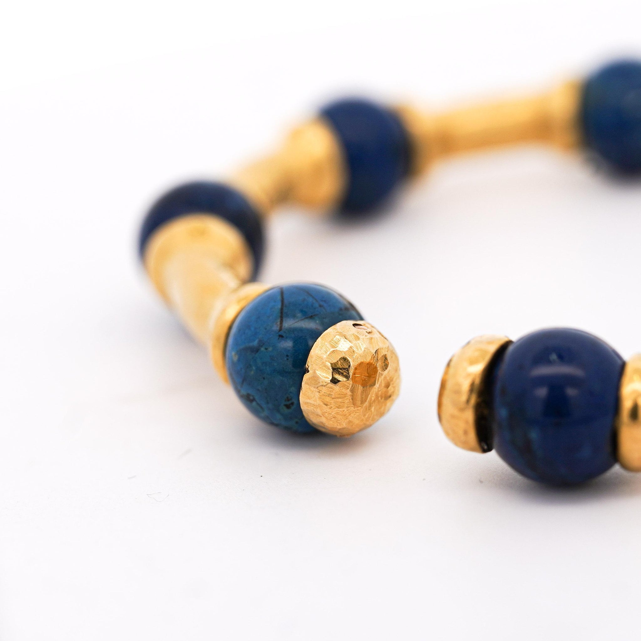 Lapis Lazuli 21K Gold Hammered Finish Bead Bangle Bracelet