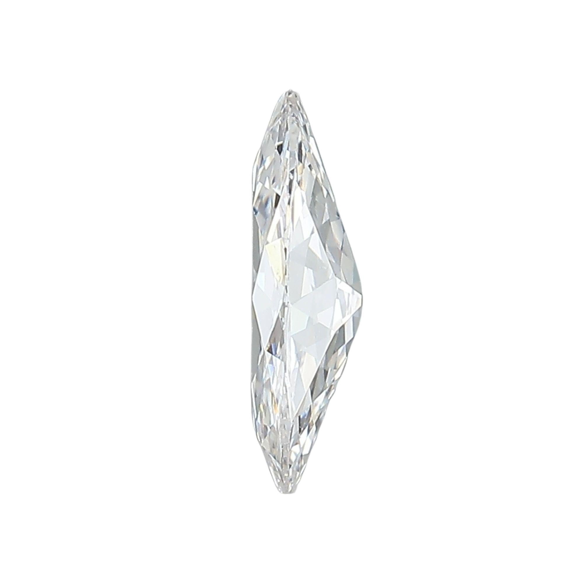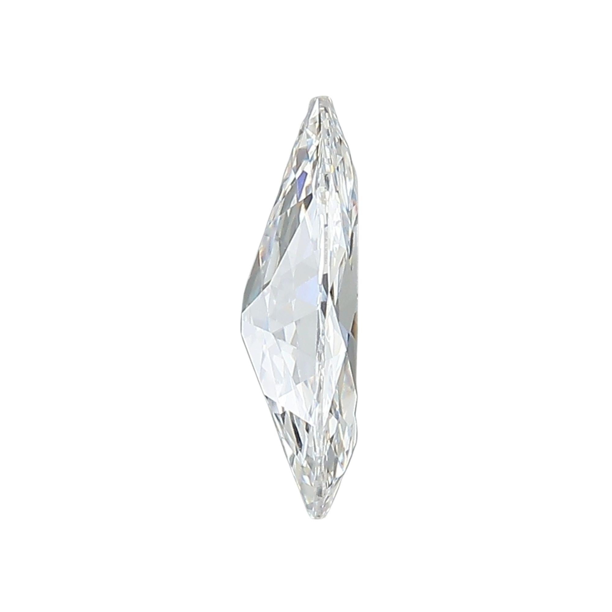 This 1.48 carat modified marquise brilliant diamond, often called a "Moval" for its hybrid marquise-oval characteristics, achieves the coveted E color grade placing it in the colorless range—the second-highest color grade possible. VS1 clarity indicates very slight inclusions visible only under 10x magnification, ensuring exceptional eye-clean appearance. The modified marquise cut combines the elongated elegance of traditional marquise with more rounded ends reminiscent of oval cuts, creating a distinctive and sophisticated silhouette. At 11.56 x 6.71mm, this diamond provides substantial finger coverage and visual impact while the elongated shape creates a flattering lengthening effect on the finger.