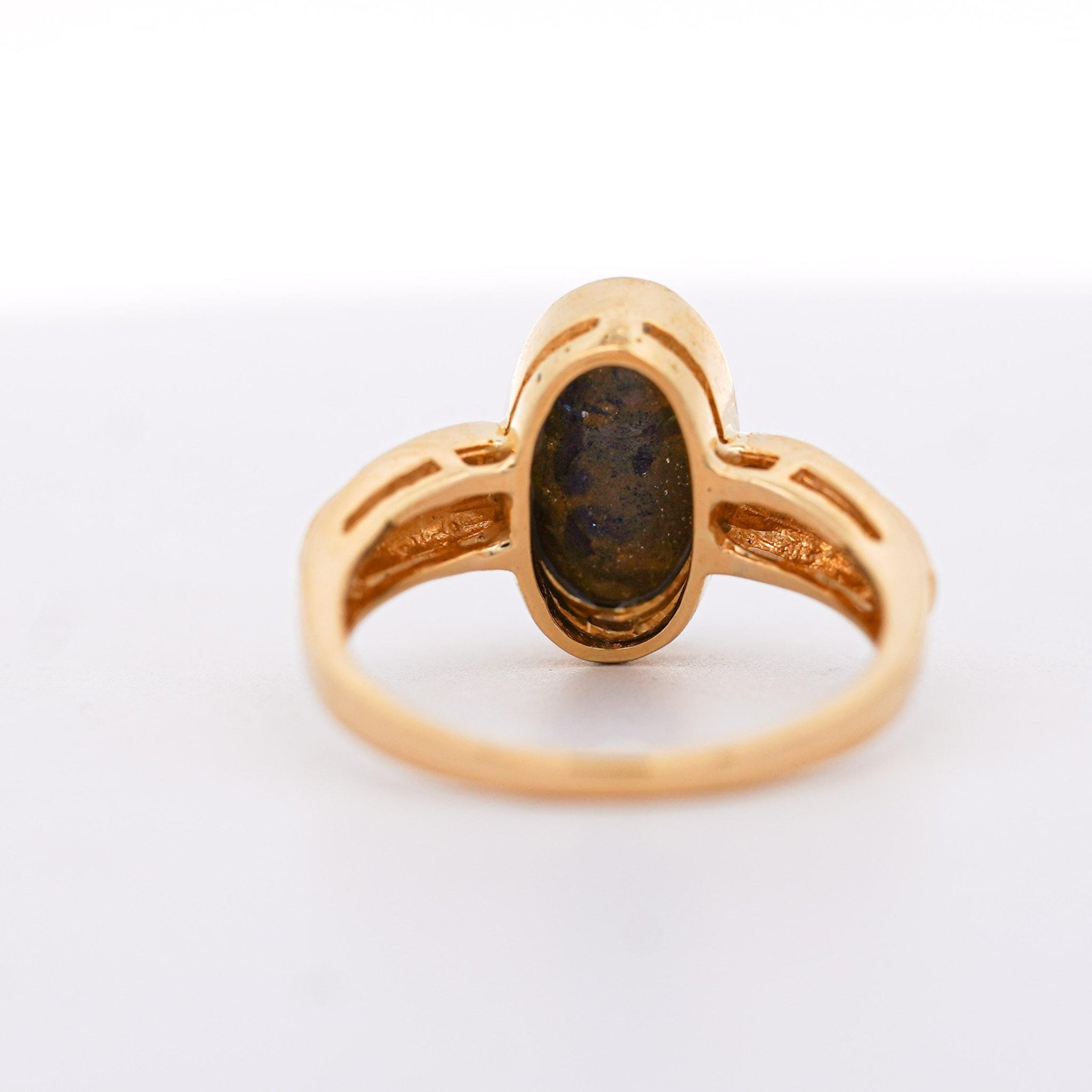 Natural 0.12 Carat Diamond with Black Opal Doublet in 18K & 14K Yellow Gold Ring