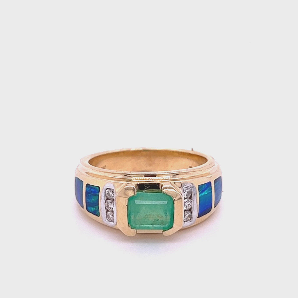 0.76CT Colombian Emerald and Inlaid Opal 14k Yellow Gold Ring